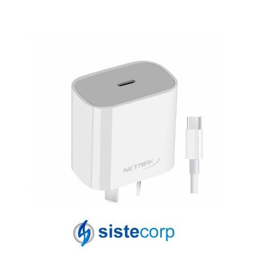 CARGADOR USB TIPO C + CABLE USB TIPO C – 20W – 1 SALIDA – BLANCO – NETMAK (NM-CP8 )
